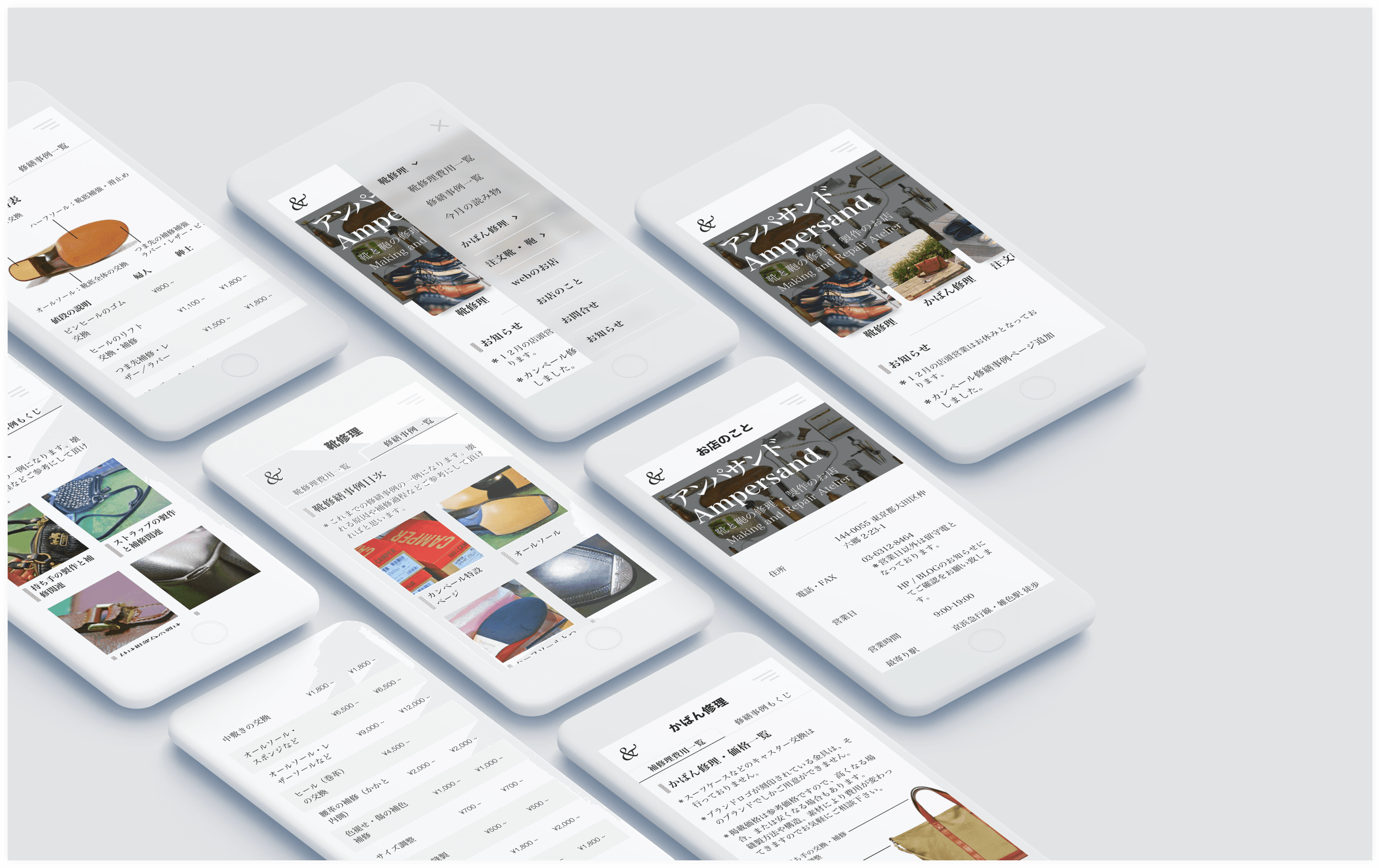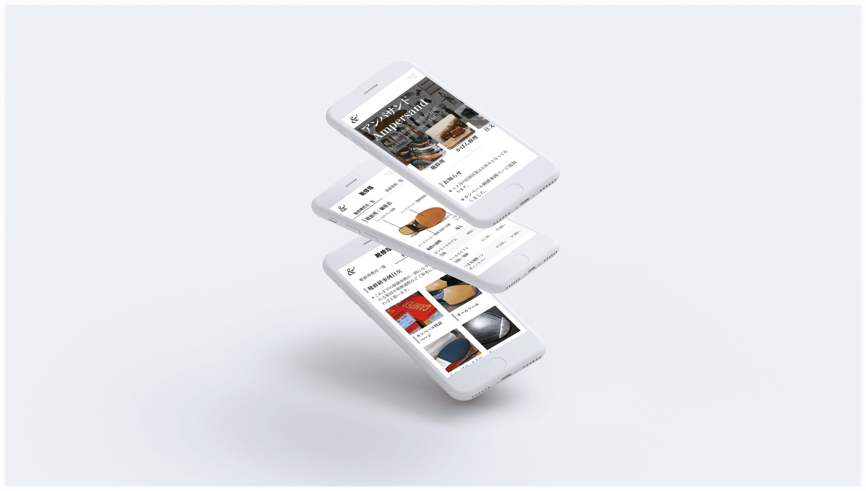 Ampersand is a shoe and bag repair store located in Tokyo, Japan. A friend of mine raved about the owner’s ability to repair any type of shoe or bag but was turned off by the owner’s website. Specifically, the website had no mobile view. I decided it would be a good exercise to convert the website over to mobile because I had never done this for a Japanese website. I’ve also never worked with Japanese typography so I knew this would be a good challenge as well. Japanese typography definitely has its own constraints and limitations and tackling them turned out to be quite fun and rewarding.